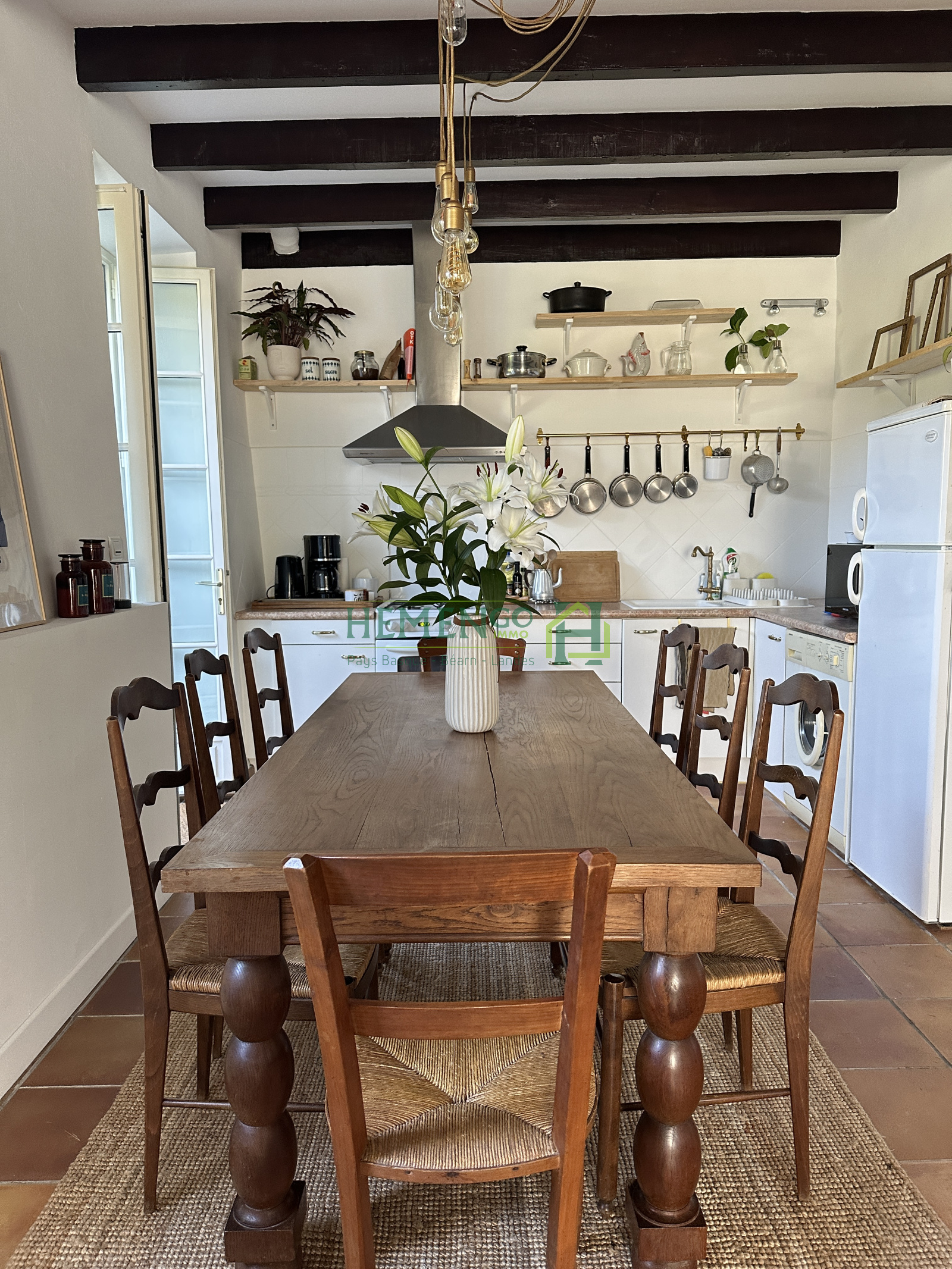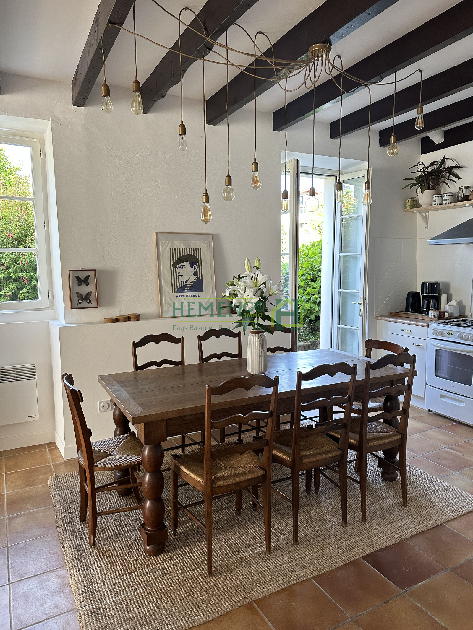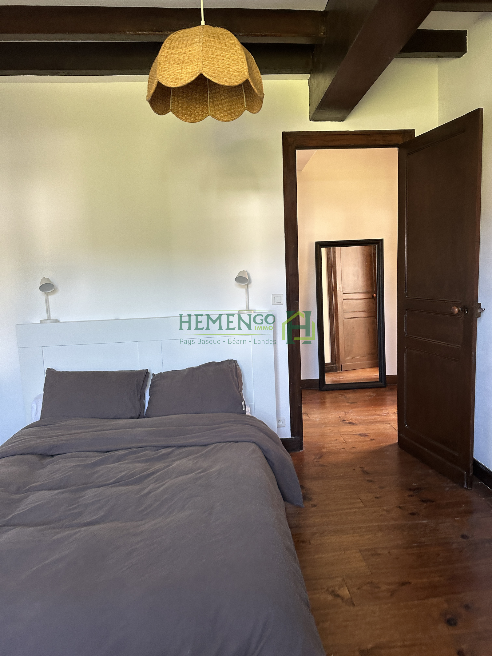 Au cœur du Pays basque, découvrez ce T4 meublé situé dans une charmante maison basque. Le rez-de-chaussée offre une entrée, une belle pièce de vie avec cuisine ouverte et une buanderie avec WC. À l’étage : trois chambres confortables, une salle de bain, deux WC et un espace bureau.